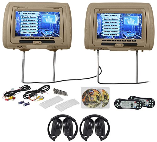 -. Title : Rockville RVD951-BG 9 Beige Dual DVD/HDMI Car Headrest Monitors+2 Headphones