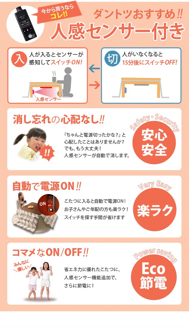 【人感センサー付】ファンレス石英管ヒーター(400W・中間スイッチ式)、コード長3m