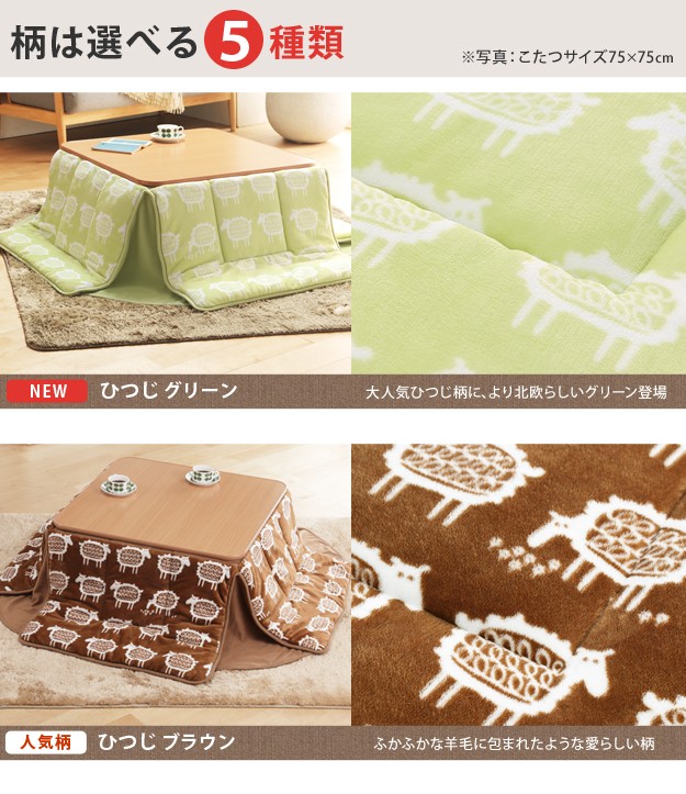 布団バリエーション:エルク、ノルディック、ひつじ_ブラウン、ひつじ_グリーン、しじら織り
