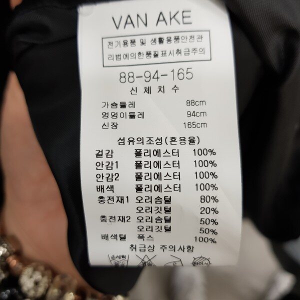 반에이크 덕다운 폭스카라점퍼 입니다.표준사이즈 가슴둘레 88엉덩이둘레 94신장 165브랜드 사이즈실측사이즈55사이즈가슴단면53cm총기장104cm66사이즈가슴단면 56cm총기장106cm실측사이즈는 재는 위치에 따라 1-2CM 정도 차이가 날수 있으니 구매시 참고 부탁드립니다^^