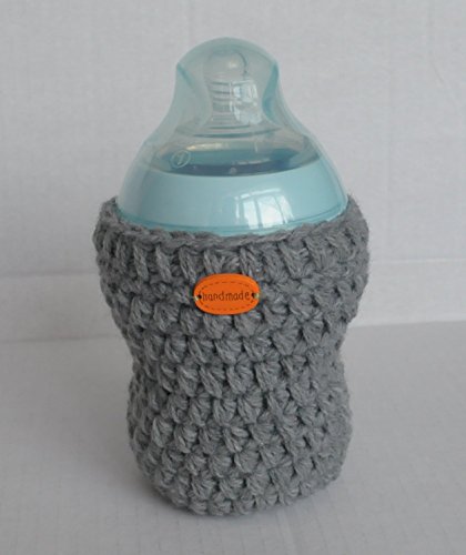 This listing is for a hand crocheted baby bottle warmer; Custom made for Tommee Tippee Closer to Nature 9 oz. This Item also fits other bottles of similar shape and size, such as Dr Browns Natural flow Wide Neck 120m/150ml Avent Classic 260ml. This would make a great gift for a newborn, baby shower or any other occasion. This is a 'must buy' baby essential' as it is very stylish and convenient when you are on the go, perfect infant feeding bottle accessory! I use double strands of Double knit acrylic yarn to create these covers so they are extra thick and durable, this acts as an insulation to the bottle, while also making it easy to carry the bottle. These covers have elastic fitted so it grips on to the bottle for a snug fit. - comes with an oval shaped wooden label tag button which has 'handmade' engraved on it as shown but the colours vary. - hand washable - machine washable at 40 degrees, lay flat to dry- *Please note that the bottles are not included. If you would like a different colour or design, please check my other listings. Care instructions: Hand washable (warm), Machine washable at 40 degrees, Cold rinse, short spin. Do not Wring, Gentle tumble dry. Dry flat away from direct heat.