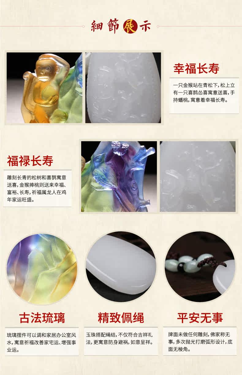 属龙人可以佩戴【鼎风阁猴桃报喜】玉坠保个人平安顺畅,玉坠为一只金猴站在青松下,松上立有一只喜鹊,松喜寓意送喜。金猴健美轻盈,灵巧可掬,以手臂置于额头前做探看远方情状,寓意高瞻远瞩,探看事业升腾和财源富运的道路。金猴另一只手持蟠桃,蟠桃又称寿桃,寓意幸福、富裕、长寿。可为属龙人在鸡年带来三大福瑞之气,襄助龙人在鸡年逢凶化吉,昆仑白玉亦为世间名器,可保平安,增运添财,配合【鼎风阁三合莲花】项链使用效果更佳。