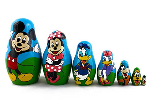 -. Title : Matryoshka Babushka Russian Nesting Wooden Stacking Doll Best Cartoon Mickey Mouse 7 Pcs