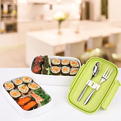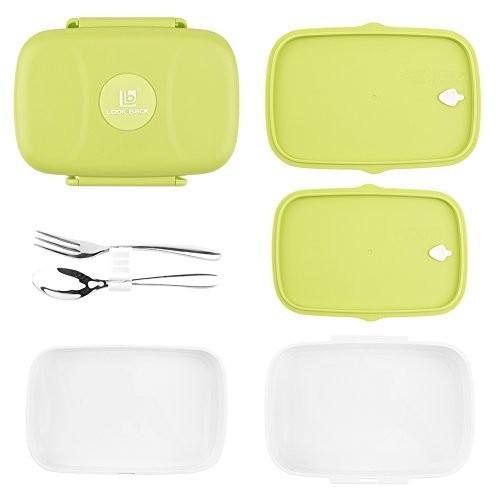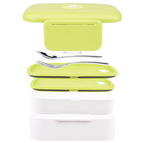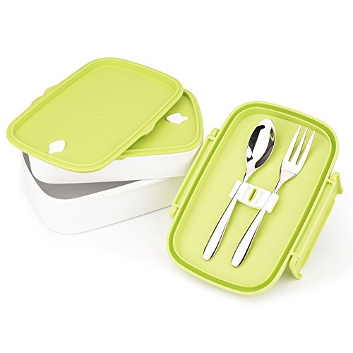 CamRom Foldable Leakproof Lunch Bento Box - 2 Layers Design Lunch Box with Silverware, BPA Free, Safe for Microwave Fridge and Dishwasher (Green)