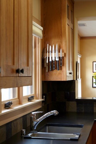 -. Feature : Featured in the Chicago Tribune, Made out of furniture grade Clear finished Cherry wood. Also available in Walnut, Maple, Lacewood, Zebrawood and Wenge. / For a clean and elegant look, the M.O.C Board has been designed so that no screws or logos are visible once installed. / The hand rubbed clear finish used on M.O.C. Boards is non-toxic and food-safe. / Continuous magnetic field that will hold your knifes, tools or other ferromagnetic objects securely / Template and hardware for easy installation on drywall and cabinets are included / Made in the USA / Magnetic Knife Holder