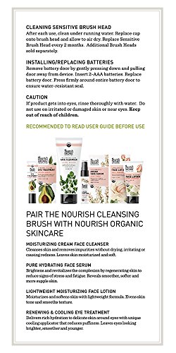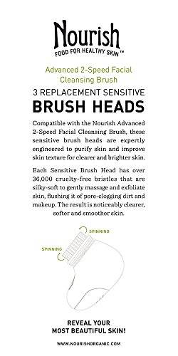 -. Binding : Misc. -. Brand : Nourish Organic -. Feature : Contains 3 replacement brush heads / Each brush head will last up to 30 days with regular use and care. -. ProductGroup : Beauty -. ProductTypeName : BEAUTY -. Title : Nourish Organic Facial Cleansing Brush Head