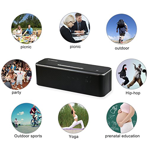 -. Feature : Bluetooth Version 4.2 - Support any Bluetooth-enabled device,Connect fast and Stable,Compatible with most Fashionable Smartphones, iPhone 7/6/5/S/Plus included,Sumsung S8 plus,S8/7/6 edge, iPad, tablets, smartphones, MP3, MP4, radio players, and other Bluetooth enabled digital players. / Incredible Battery Life - 7-10 hours playtime powered by a built-in high capacity Li-ion battery(2400mAh).8W*2 Output-NFC Wireless Bluetooth Speaker delivers perfect music,the super sound feeling for those who love sleeping with music at night,perfect for travelling,outdoor and home. / Compact Size - let you easily move the portable speaker around from room to room.superlight and easy to fit in your backpack.Gently touching with your fingertip easily achieve switching the mode, volume control.Jam Heavy Metal Crafts make the speaker amazing,comfortable handle. / Superior 3D Stereo Surround Sound - experience music in full-bodied stereo realized through dual high-performance drivers.room-filling surround sound in the compact,elegantly portable speaker with super clear mids and highs.Balanced rich bass with this portable size. / Built-in aux Connector - make it easy to plug-and-play from any device.A stable, reliable, and consistent Bluetooth connection for uninterrupted audio play from up to 33 feet (10 meters) away,3.5mm jack makes the portable speaker compatible with non-Bluetooth devices.