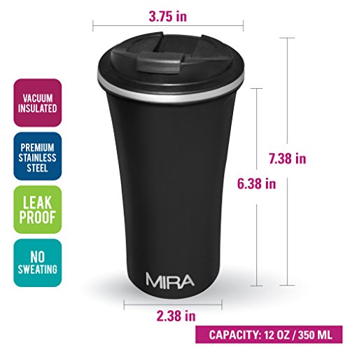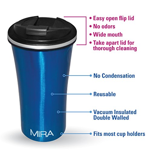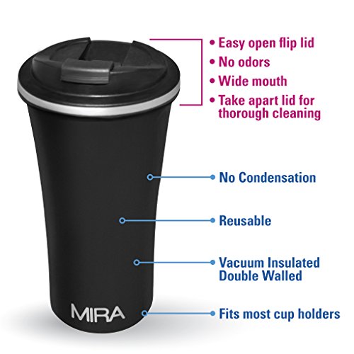 -. Brand : MIRA Brands -. Feature : EASY CLEAN, NO ODORS, DURABLE: Stainless steel makes the MIRA Car Mug a cinch to clean. A quick wash at the sink will dispose of any residue and leave your mug fresh and ready for your next beverage. This includes the lid; unlike other coffee mug lids, the MIRA Car Mug lid comes apart for complete and easy cleaning. The entirety of the lid can be cleaned so no coffee or milk deposits remains, which means no odors at all. / REUSABLE, UNBREAKABLE: A more eco-friendly option than paper coffee cups or plastic water bottles, the MIRA Car Mug helps to reduce your carbon footprint while keeping all of your beverage fresh and tasty. The durable design allows for the mug to be accidentally knocked over without causing a disaster. / VERSATILE: The practical use of this mug extends way beyond your car. Fill it with your favorite hot or cold beverage and keep it on your desk at work, take it with you to a weekend sporting event, use it to stay hydrated during a hike or even to keep your cocoa warm while watching old movies at home. No matter what beverage you prefer, coffee, tea, water, soda or juice, hot drinks will stay steaming for 12 hours and chilled liquids will stay cool for 24 hours. / SLEEK DESIGN: A perfect fit in your car's cup-holder and also easy to hold, the Car Mug is designed with comfort of use in mind. An easy to use flip lid makes drinking in stop-n-go traffic a cinch; say goodbye to coffee spills. The large 12 oz /360ml capacity will keep you satiated and hydrated throughout your commute. And the wide mouth is designed for easy filling and drinking. / STAINLESS STEEL, DOUBLE-WALL, VACUUM INSULATED: The Mira Car Mug keeps your favorite beverages piping hot for 12 hours or frosty cold for 24 hours. No more lukewarm coffee during your commute to work; your caramel latte, macchiato, hot tea or any other beverage will remain fresh and delicious all the way to the last drop. Iced drinks will remain chilled and refreshing throughout your day. The premium grade 18/8 stainless steel, vacuum insulation and double wall construction will protect the taste and temperature of all of your beverages. -. Label : Mira Brands -. Manufacturer : Mira Brands -. ProductGroup : Kitchen -. ProductTypeName : KITCHEN -. Publisher : Mira Brands -. Studio : Mira Brands -. Title : Travel Car Mug, Vacuum Insulated, Keep Hot or Cold,