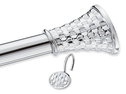 Elegant Home Fashion Woven Decorative Shower Curtain Rod and Hooks Set, Chrome Finish