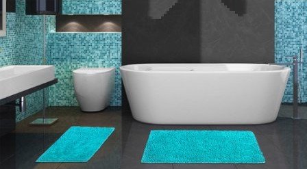 DINY Home 2 Piece Chenille Loop Bath Rug Set Mykonos Series Turquoise