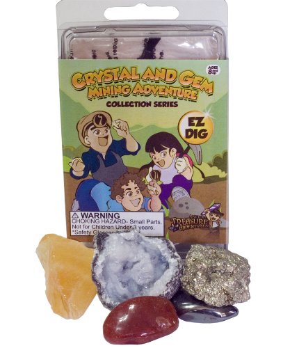 -. Binding : Toy -. Brand : Gem Center U.S.A. -. EAN : 0804879345305 -. Feature : Easy to dig. / 5 Different gems to discover / Gem Guide included with more that 30 gems to collect / One Geode in each kit / Digging tool and brush included -. Label : Gem Center U.S.A. -. Manufacturer : Gem Center U.S.A. -. Model : EZDIG5PC -. MPN : FBA_EZGIG5PC -. PackageQuantity : 1 -. PartNumber : FBA_EZGIG5PC -. ProductGroup : Toy -. ProductTypeName : TOYS_AND_GAMES -. Publisher : Gem Center U.S.A. -. Size : 5 pc -. Studio : Gem Center U.S.A. -. Title : Crystal and Gem Mining Adventure Easy Dig Collection Series -. UPC : 804879345305