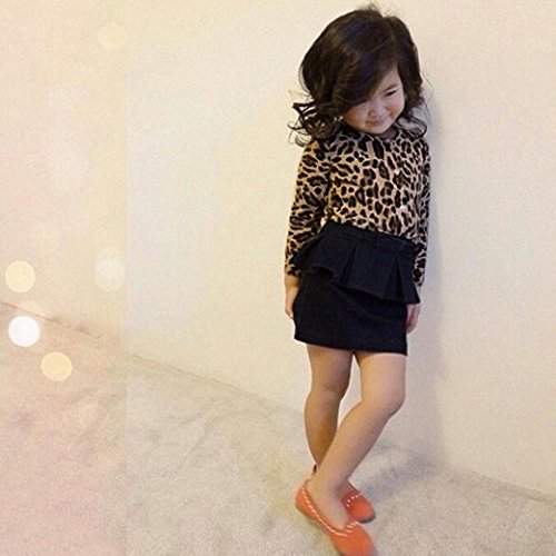 -. Title : Iuhan Kids Baby Girls Leopard Long-Sleeved T-Shirt Tops+Jean Skirt Clothes Set