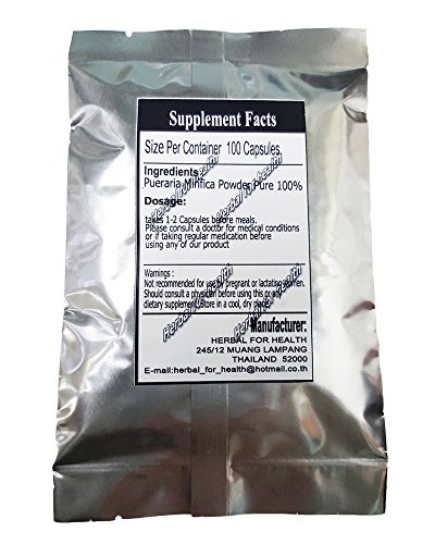 -. Binding : Health and Beauty -. EAN : 0726670566614 -. Feature : ORIGINAL PRODUCT FROM THAILAND ONLY. PURE PREMIUM GRADE DRIED POWDER 100% / After starting to use the Pueraria Mirifica capsules results will show after 4 - 6 weeks depending on the quantity of mammal in the breasts. The maximum incremental of the breasts will be achieved after 3 months of using Pueraria Mirifica. / Increases of breast size from 1 - 2 inches are possible (Pueraria Mirifica works for 90 % of woman) / ฺBreast became firmer and lifting, skin look lighter. / useful herb for post-menopausal women -. Label : herbal for health -. Manufacturer : herbal for health -. PackageQuantity : 1 -. ProductGroup : Health and Beauty -. ProductTypeName : HEALTH_PERSONAL_CARE -. Publisher : herbal for health -. Studio : herbal for health -. Title : 100 Caps. Pueraria Mirifica Powder Root Pure 100% Breast Augmentation 500 Mg. From Thailand -. UPC : 726670566614