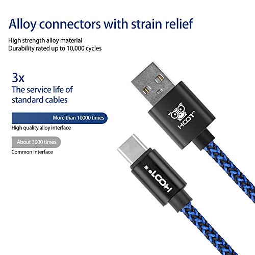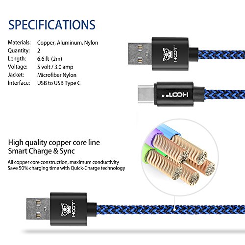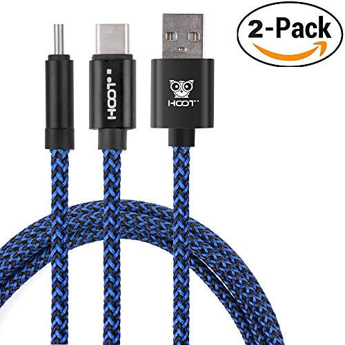 [NEWEST VERSION] Hoot2 USB Type C Braided Nylon Cable, Fast Charge, USB-C to USB-A, 2 Meter (6.6 Feet) For S8, S8 Plus, S8 Edge, New MacBook Pro, (Blue)