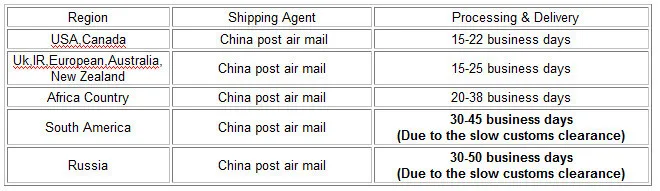 標準サービスは、中国のポスト航空便。それは約18〜25営業日。ご注意このサービスは追跡可能。あなたが注文合計金額未満5.00ドル、このサービス追跡可能ではない。