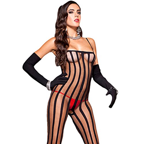 -. Binding : Apparel -. Brand : Century Star -. ClothingSize : One Size -. Color : Black -. Department : womens -. Feature : Our Brand: Century Star is a brand registered in the USA, to ensure quality product, NEVER purchase Century Star Brand items out of Century Star store / Material: Nylon & Spandex. It is a nice sheer material that really accents your body and feels so comfortable against the skin / Size: One size. Waist: 58cm/22.8" Hips: 80-82cm/31.5-32.3" Length: 90-92cm/35.4-36.2" / Features: This black sheer vertical striped bodystocking is super sexy and surprisingly comfy, see though mesh and black stripe designed, match with opera gloves, looks mysterious but not complicated to wear / Occasion: This sheer mesh body stocking, is all that you'll need to turn the heat up. It has a vertical stripes, spaghetti straps and an open crotch. Thong not included -. Model : CS0161A004SN -. ProductGroup : Apparel -. ProductTypeName : UNDERWEAR -. Size : One Size -. Title : Century Star Stylish Sheer Vertical Mesh Striped Open Crotch Bodystocking Bodysuits