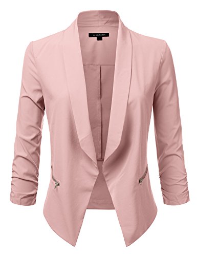 Product Description JJ Perfection Women's Lightweight Thin Chiffon Ruched Sleeve Open-Front Blazer was crafted from lightweight and silky soft fabric, the open-front blazer features long sleeves with a ruched elasticized band at the sleeve hem, a classic notched collar and uneven vented hem. 0