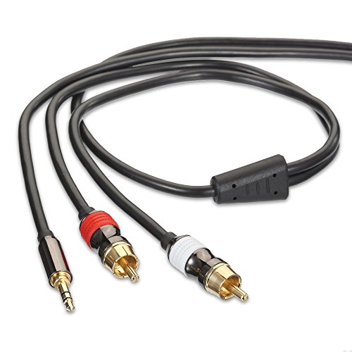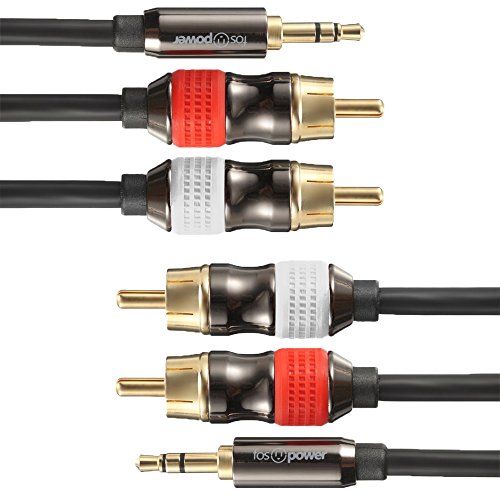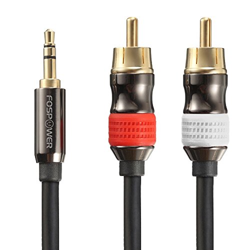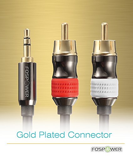 FosPower premium 3.5mm male to 2RCA plugs stereo audio cable allows you to connect your iPhone, iPod, audio streaming device (e.g. ChromeCast Audio, Bluetooth audio receiver), MP3 player, CD player, smartphone, tablet, or any audio device with 3.5mm headphone jack to your office, or home stereo audio system.