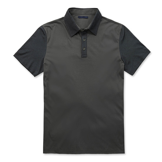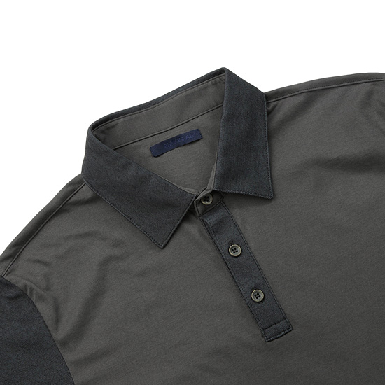 - 몸판과 소매,카라의 배색 디자인이 캐주얼한 감각의 카라 티셔츠.