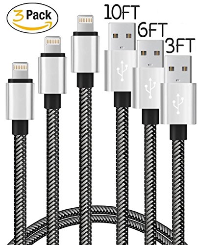 -. Title : Lightning to USB Cable, 3Pack 3FT 6FT 10FT Nylon Braided iPhone Charging Cord iPad Charger for Apple iPhone SE/6/6S/Plus/5S/5/iPad Mini/Air/Pro/iPod, Compatible with iOS9