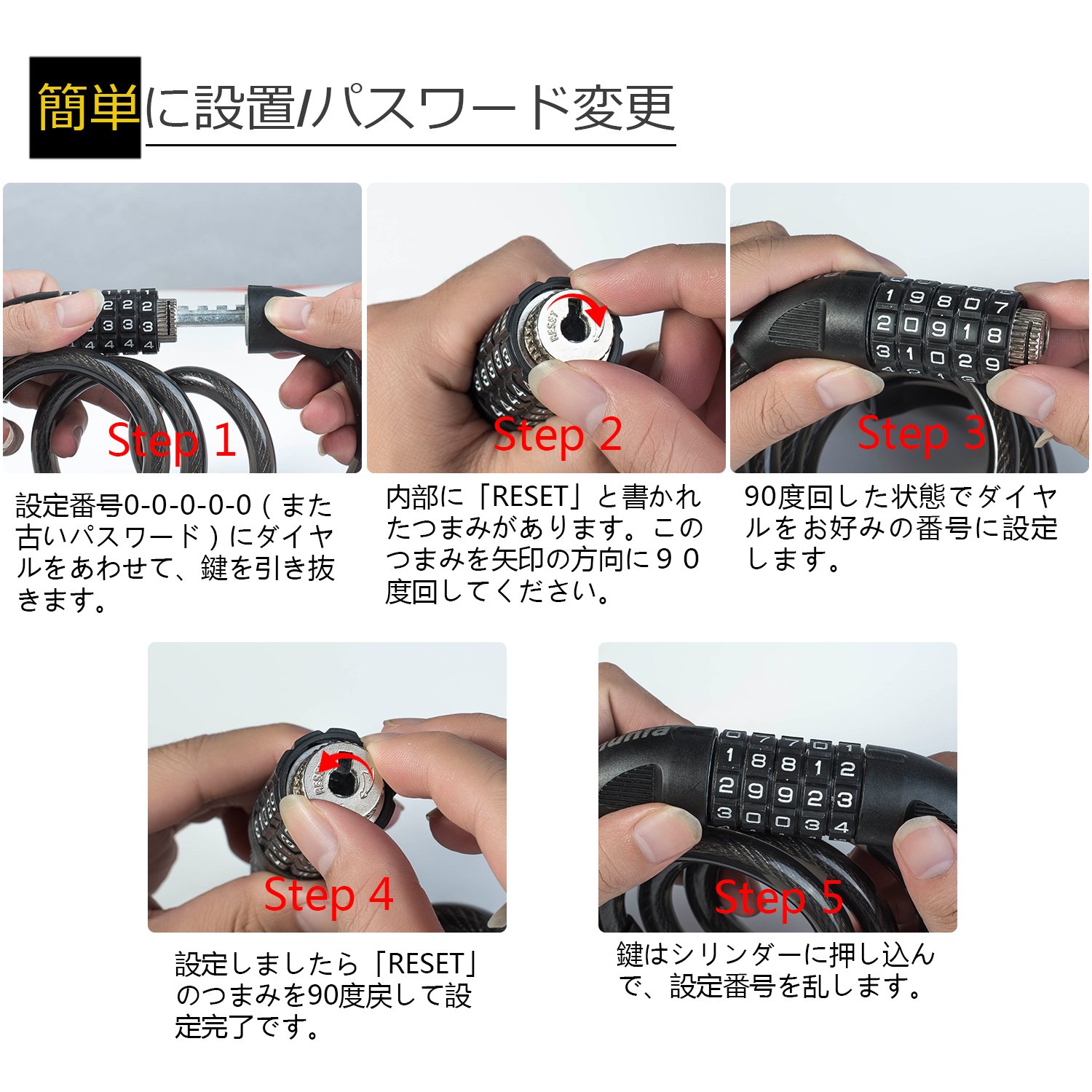 Flexibility for cable The dial type can be unlocked with only a 5-digit pin number.