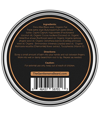 The Gentlemen's Fragrance Free Beard Balm will moisturize your hair and treat the skin at the same time. It conditions, strengthens and hydrates hair fibers from the inside, encourages hair growth, keeps your beard healthy, Controls Rogue, Coarse Hairs and will help repair dry and damaged Split Ends while giving it a slight hold. Hand Made in the U.S.A. No Chemicals or Preservatives and has not been tested on animals.