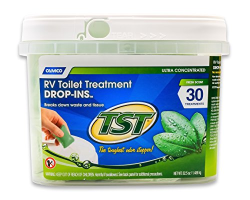Camco's TST Blue Enzyme RV Toilet Chemical Drop-in contains a new bacterial/enzyme complex that will digest waste, tissue, fats and proteins and only activates in the presence of material requiring digestion. Unlike normal enzymes, this new chemistry provides a stable product with a long shelf-life that is not temperature sensitive. Each drop-in treats 40 gallons. It contains a buffer system to prevent acid formation as well as septic odors and has a Pure Rain fragrance. All components are and biodegradable. It includes 10 drop-ins.Feature