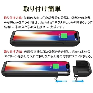 • 【バッテリー内蔵ケース】ケースとバッテリーの1つで2役の優れもの!持ち運び便利で、iPhoneXをいつでもどこでも、手軽に充電できる!ケースをつけたまま、ボタン操作とカメラ撮影が可能で、パソコンとの同期も出来る。