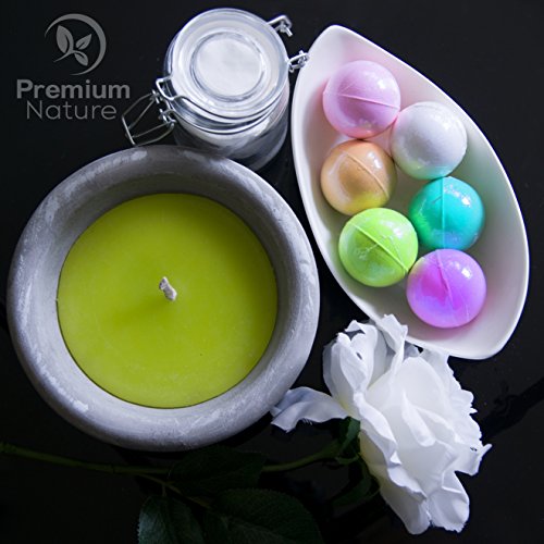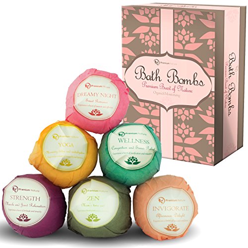 ALL NATURAL BATH BOMBS FOR SPA QUALITY AROMATHERAPY AND DEEP MUSCLE RELIEF: Premium Nature is the largest producer of health and beauty products and these bath bombs are no exceptions. Loaded with Dead Sea and Epsom Salt, Cocoa Butter and Shea butter these products make for excellent aromatherapy and healing accompaniments.