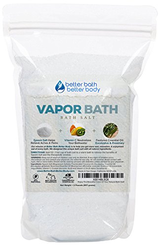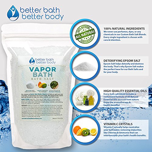 Vapor Bath Salt 32oz (2-Lbs) - Epsom Salt With Eucalyptus & Rosemary Essential Oil & Vitamin C Crystals - Soothing Vapors To Relax & Release -...