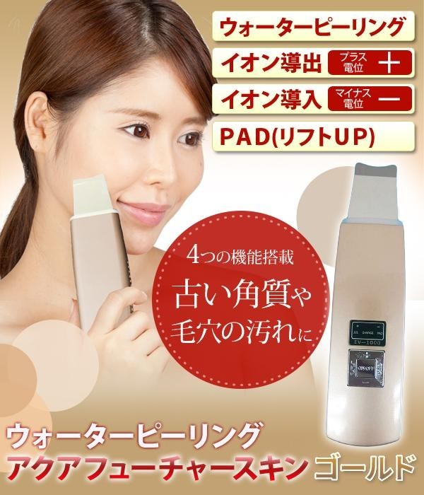 | 肌を水で濡らして本体をやさしくあてるだけの簡単操作!!ミクロレベルの超音波振動が水を蒸気に還るのと同時に、古い角質や毛穴の汚れを洗い流します。「ピーリングモード」「導出モード(プラス電位)」「導入モード(マイナス電位)」「PAD(リフトアップ)」の4つの機能を搭載。汚れのないつるつるなお肌へと導き、リフティング効果も得られます。 |