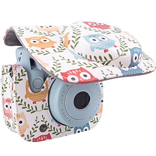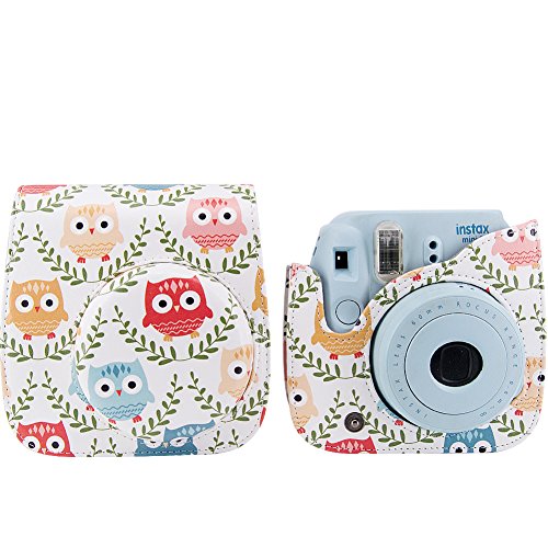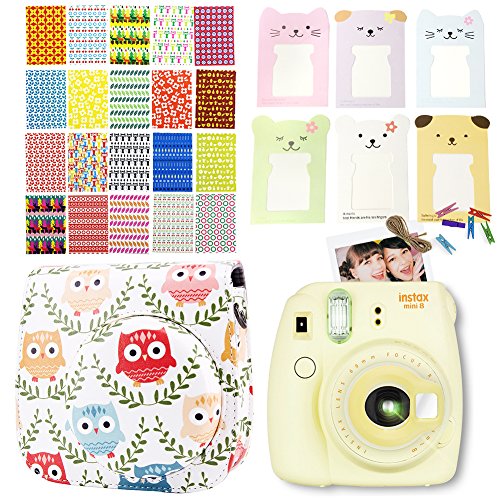 Fujifilm Instax Mini 8 / Mini 8+ / Mini 9 Camera Accessories - 4 in 1 Mini 8 Camera Bundle Set Accessory (Camera Case Bag/Portrait Mirror/Wall Hanging Style Paper Frame/Film Sticker) - Cute Owls