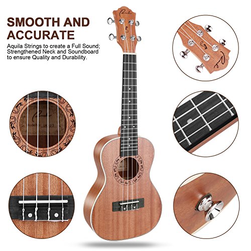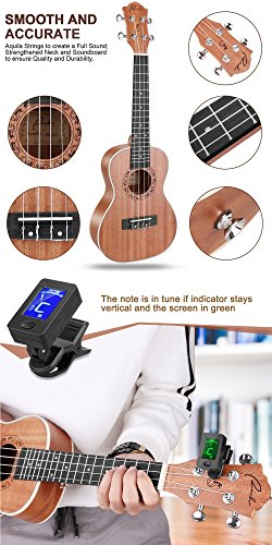 Product Description RANCH Concert Ukulele Instrument with Protective Gig Bag Matching Strap Accessories Bundle Kit, 24.25" x 8.25 Inches Small Starter Guitar for Beginner - A wonderful gift set for your friends and family who are a musician or to anyone close to you who love playing uke. Why Choose Our Premium Concert Ukulele Musical Accessory? ? TOP NOTCH QUALITY ? It's crafted into perfection, handmade acoustic instrument that is strictly built with solid Mahogany Sapele Rosewood materials that is durable, lightweight long service life. ? It has an eye-catching rustic color design easy to adjust and play for beginners. ? It produces a warmer and darker tone, clear and louder with melodious sound that gives a good feeling more relaxing environment at home, beach, camping or in a car road trip. ? This string instrument isn't intended for high-end use, it's a great for beginner ukulele or an excellent spare to keep handy for trips to the beach, parties or hanging out with your friends or family at home. ? AWESOME VALUE PACK ? 1 x Gig Bag with Gray Matching Strap: Our case has a strong zippered closure that is easy to open and close a front pocket for small accessories. With adjustable strap that fit conveniently in your shoulder at the same time for easy carrying for traveling. ? 1 x Ranch Concert UKULELE: A perfect starter guitar instrument for beginner, for both kids and adult. ? 1 x Digital Tuner with Clip Battery: Easy to set up with precise and soft tune. ? 1 x Extra Set of Nylon Strings: No buzzing and squeaking as you move your fingers up down the strings. ? 1 x Polishing Cloth: It's smooth fabric that polishes and removes dust and dirt easily will never leave a scratch mark in your instrument. Buy with Confidence - Top Quality Product - 30 Day Money Back Guarantee