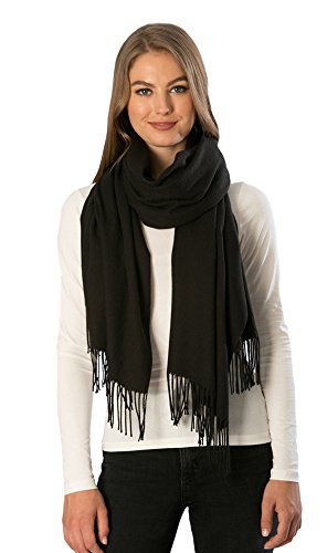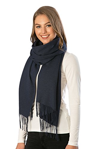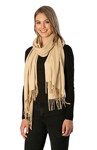 Momo Fashion Women's Cashmere Feel Oblong Fringe Scarf in Solid Colors