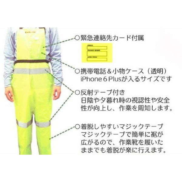 ●早朝、夕暮れ時の草刈でも、明るく見える蛍光色を使用した草刈用エプロンです。