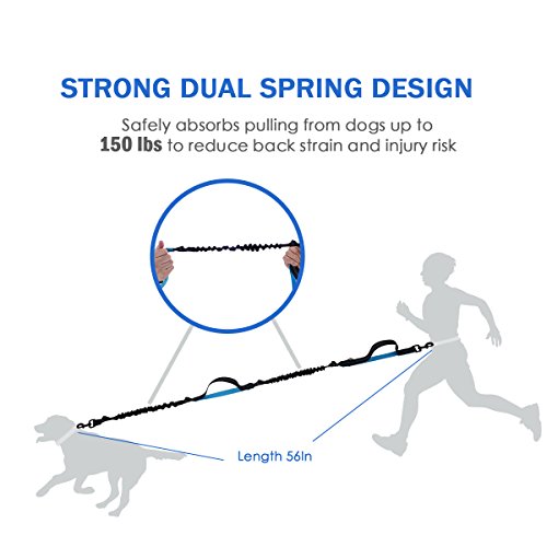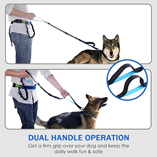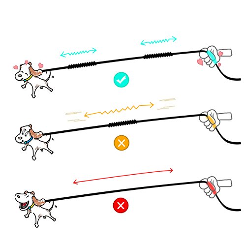 ----No Accident --- To You And Your Dog.Double handle dog leashes help you all-round control and guide your dog. With the help of the double handle dog leash, you can get a more direct control and prevent dog break vandalism or fight with other animals. Strong Dual Bungees Design protects you from all suddenly jerks or lunges from your active dog, reduce the risk of getting hurt and back strain.