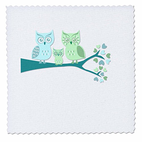 3dRose qs_128533_7 Cute Owl Family with Baby Boy Blue and Green Quilt Square, 18 by 18-Inch