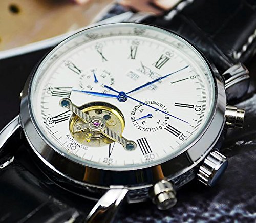 GuTe Mechanical GuTe출품 앤틱풍 심플 캐주얼 보기 편리하 빅 케이스 좋은 품질 로마숫자 평일 통근 멀티 이어 캘린더 표시 화이트 기계식 자동 감기 손목시계