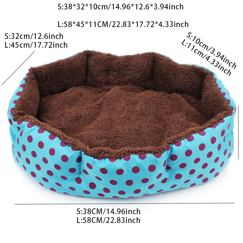 Hot Winter Warm Pet Dog Bed Soft Fleece Dot Design Pet Nest With Removable Pet Mat Octagon Shape Kennel Cat Puppy