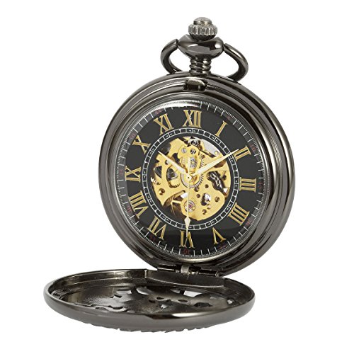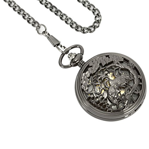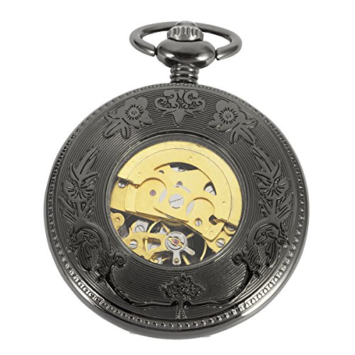 ManChda ManChDa 앤틱 두루미 럭키 크레인 자동기계 맨즈 회중 시계 중공 블랙