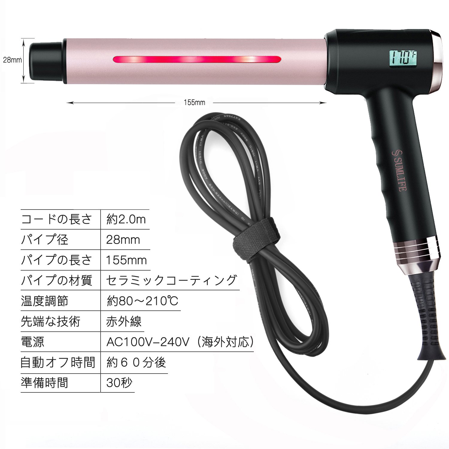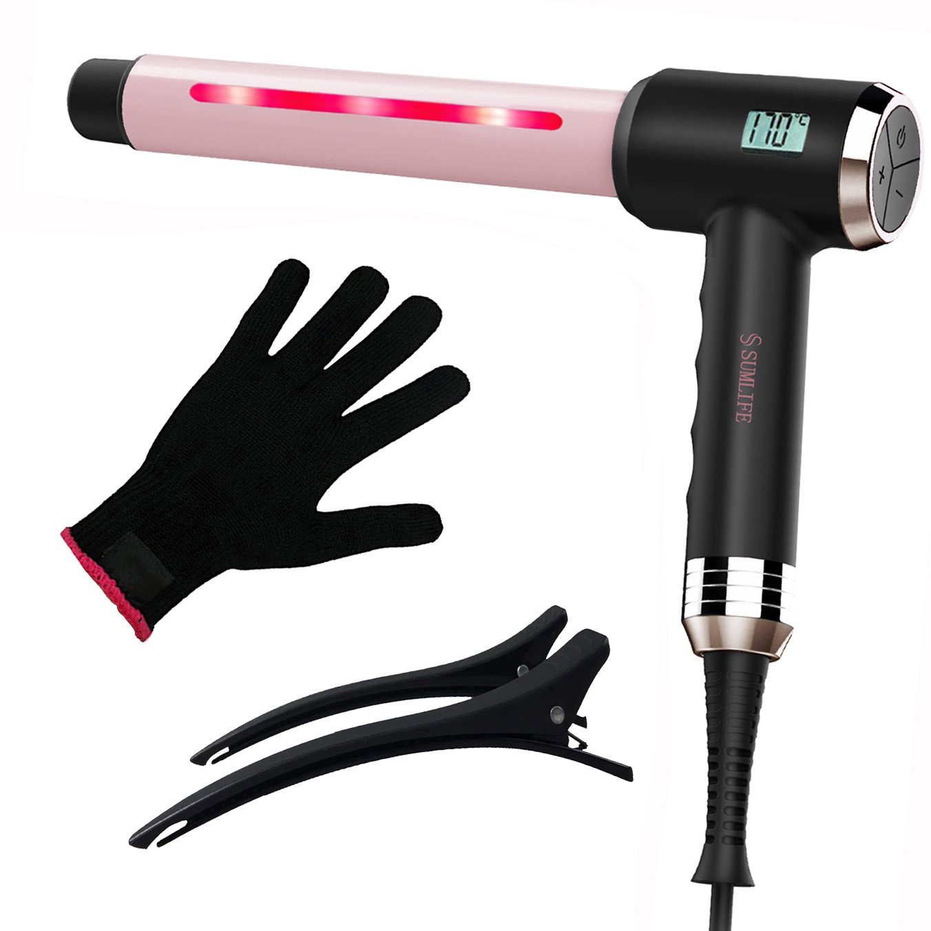 - 【便利なセット】2.5mプロフェッショナルスイベルコード搭載、やけどなど心配のないスタイリングのためにボナス熱防護手袋と2個クリップも付けます。