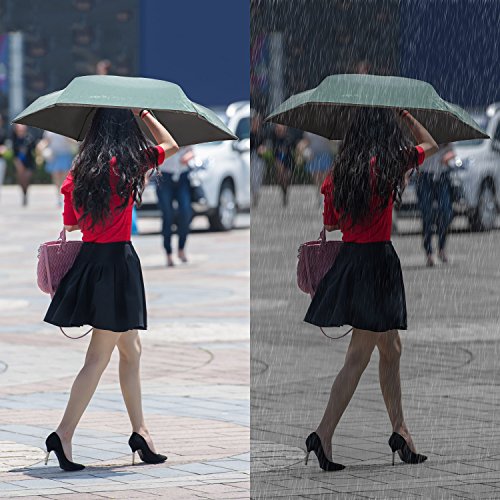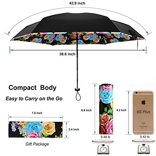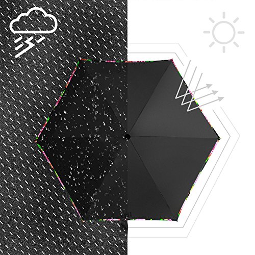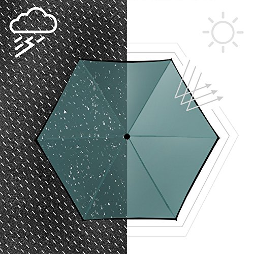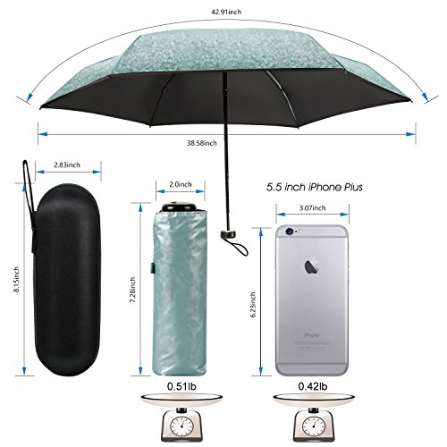 -. Feature : TRAVEL SIZE UMBRELLA: It is a compact umbrella and will be small when folding but normal size canopy when open which fits one person.Only 17.5 cm/ 6.9 inch - big as a mobile phone. Easy to put in your backpack purse or cars. Great outdoor lovers for travel. / SUPERIOR LIGHTWEIGHT: The normal umbrella is round but this one is flat umbrella which is thinner than the round one and save more space. Can be put in purse, backpack, clutch, pocket, car. Weighs only 7 oz, also fits for kids. / SUN UMBRELLA UV PROTECTION: Sun Umbrella fully blocks blazing sunshine and harsh UV rays from your skin with new layer technology coating ( 99% UV Resistance ). Protect you against sunburn if you forget your sunhat. / WIND RESISTANT & WATERPROOF: The fiberglass rib plus a mental shaft endow this umbrella with the ability to withstand in the normal heavy wind and rain. It won't easily to flip out inside like most other umbrella do. The waterproof coating make it dry quickly and you could just put it back into bag in short time after use / 3 MONTH REPLACEMENT GUARANTEE: We promise that if there is any problem with the umbrella in 3 month,Pl contact us immediately,We will send you a new replacement free and no need to return the wrong one .
