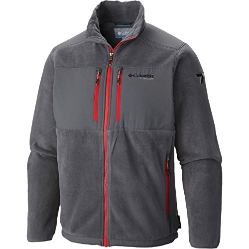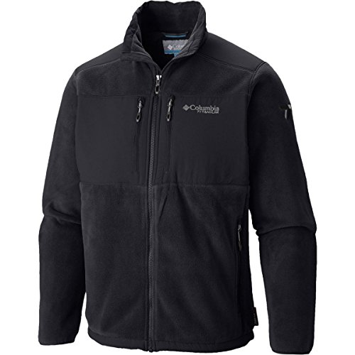 Studio : Columbia Publisher : Columbia Binding : Apparel Product Description This handsome Titanium jacket combines the soft, cozy warmth of premium fleece with water resistant overlays and underarm venting for lightweight comfort and breathability. Chamois touch tricot lining delivers great next-to-body feel, while zippered chest and hand pockets let you store your stuff on the go. Material: Fleece. 0