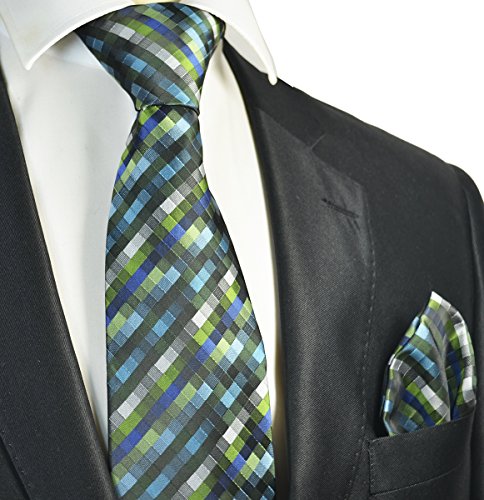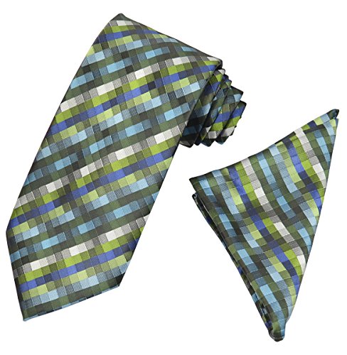 (Paul Malone)/Accessories/Ties/DIRECT FROM USA/Green Checked Men's Tie and Pocket Square Set