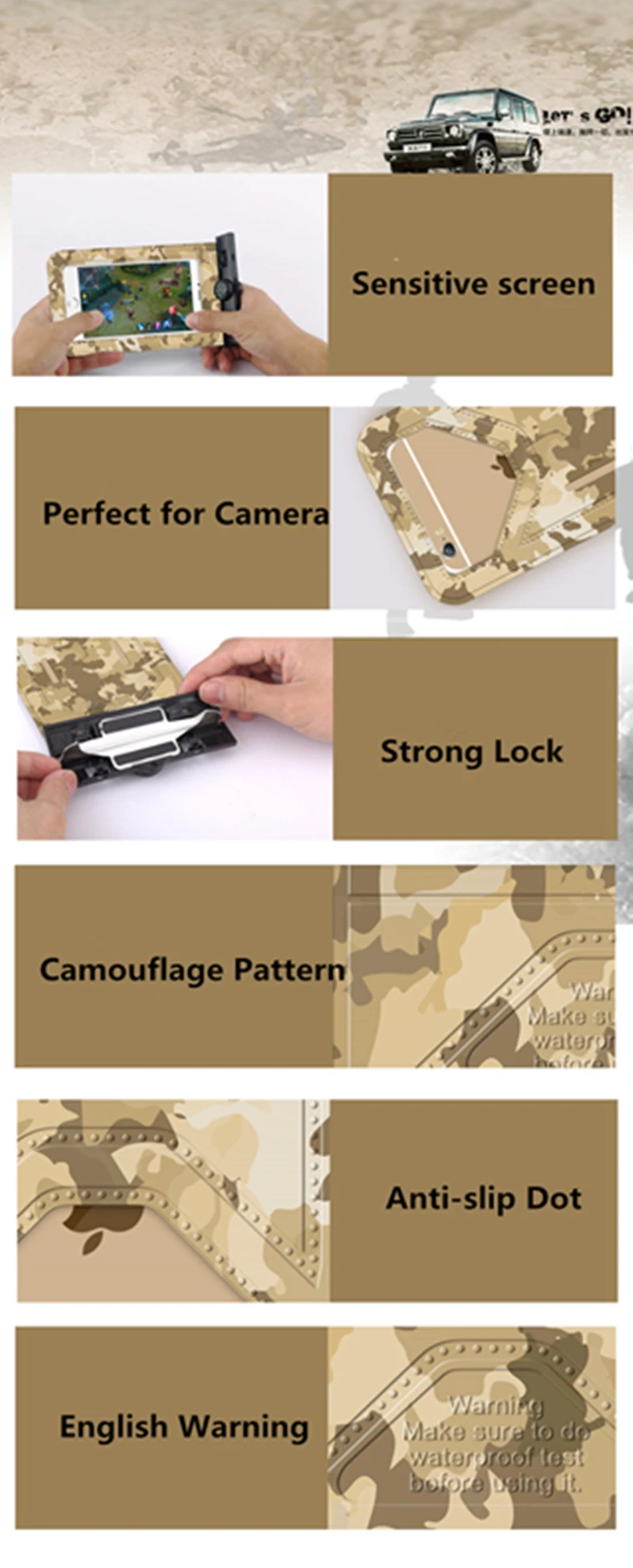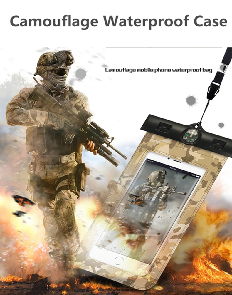 Feature 2:Universal Clear Full Protect Waterproof Case with Compass Direction