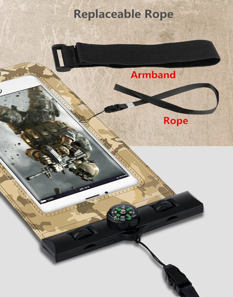 4-in-1 Design:Sport Armband + Waterproof + Compass Direction + Rope/Cord