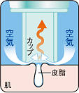 肌とカップのすき間から空気が入り込み吸引効果ダウン