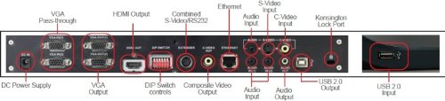Key Features. . High Definition, 1080p, WXGA, SXGA, and XGA. 20x optical zoom. HDMI output. Up to 30 frames per second live display. One-touch Audio/Video Recording and Playback. S-video, C-Video input. Dual VGA inputs and outputs. Built-in Microphone and Speaker. USB drive port reads up to 32 GB thumb drives. Compatible with all interactive whiteboards