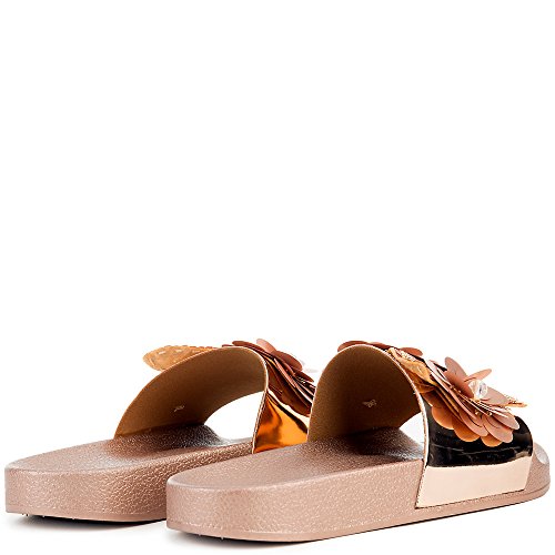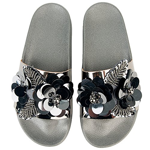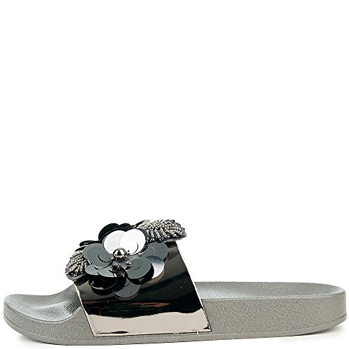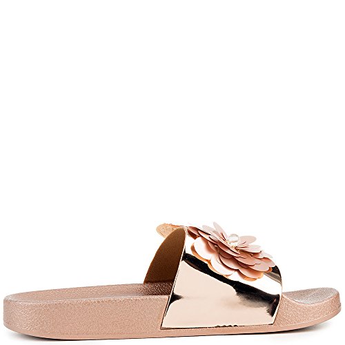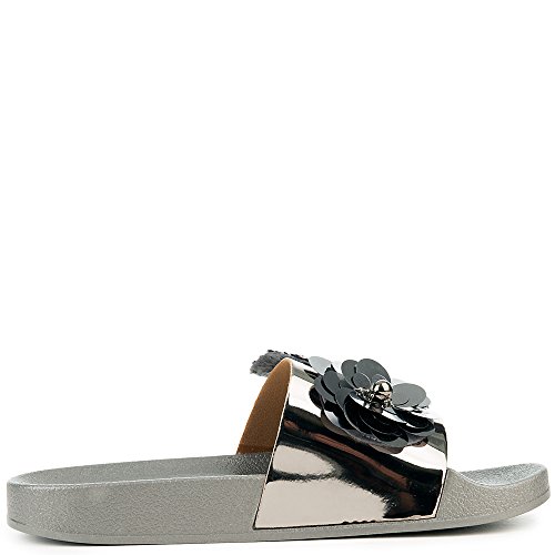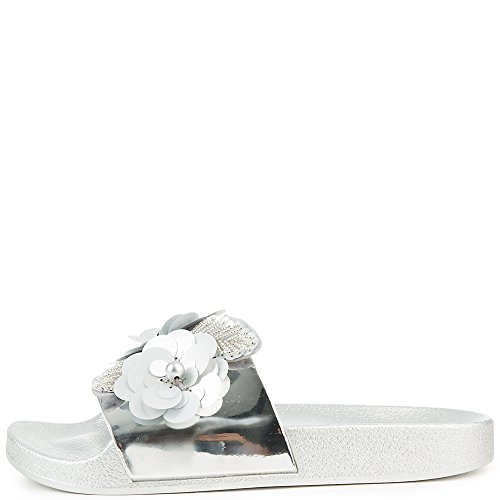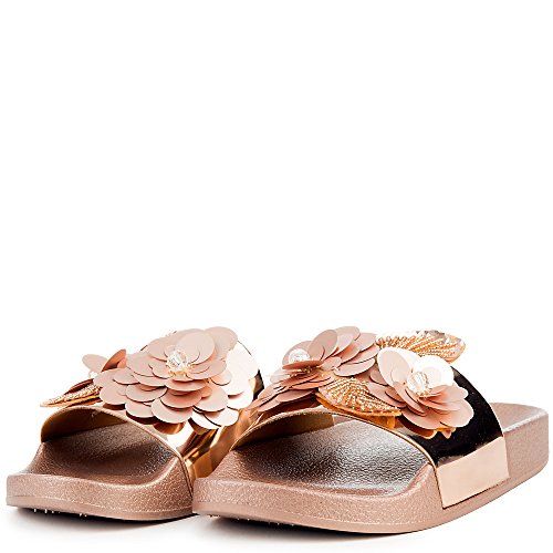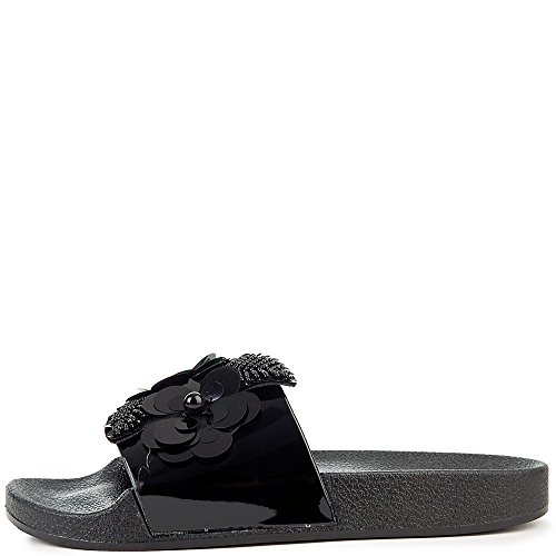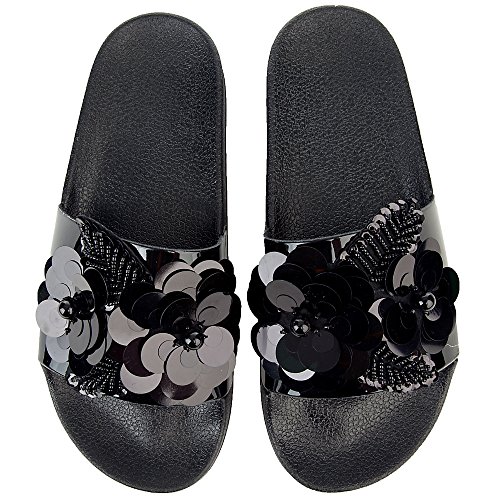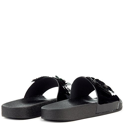 Studio : Shiekh Publisher : Shiekh Binding : Apparel Product Description Feminine flowers and a casual slip-on design make this Riri-310 Slide. Brighten up your wardrobe with this vibrant slide completed with a black leather strap. You'll never want to touch your heels again! Flexible and padded footbed All man made material 0