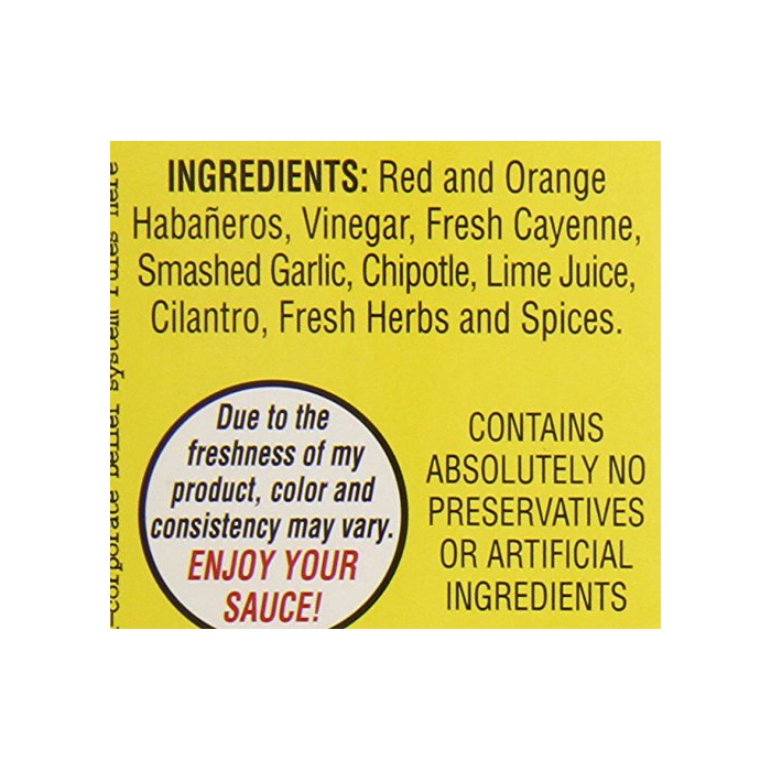 원재료:빨강과 오렌지의 하바네로,식식초(밀을 포함한다)고, 조개《엔》,마늘,《지포토레》,라임 과즙,코리안 다《―》,허브,향신료